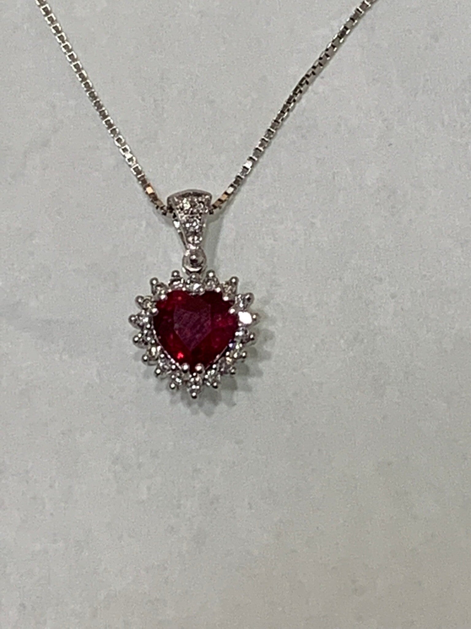 CIONDOLO PUNTO LUCE CUORE CENTRO E GIRO CON CONTORNO DI DIAMANTI NATURALI 100% E CENTRALE DI RUBINO NATURALE 100 %