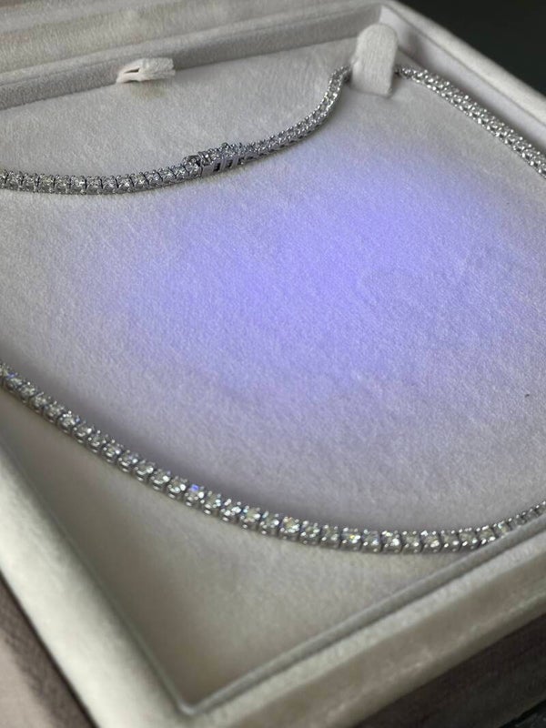 COLLIER GIROCOLLO COLLANA TENNIS IN ORO BIANCO 18 KT E DIAMANTI NATURALI 9 CT