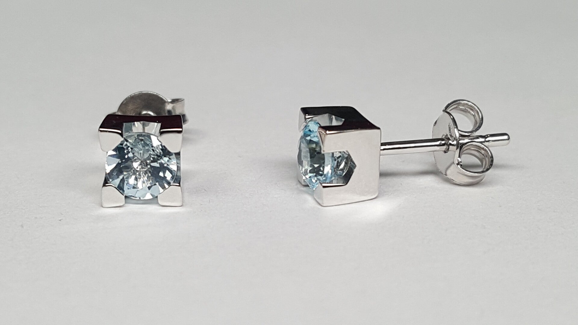 ORECCHINI PUNTO LUCE TORNITI UOMO DONNA IN ORO BIANCO 18 KT E ACQUAMARINA 1,00 CT - REGALO NATALE