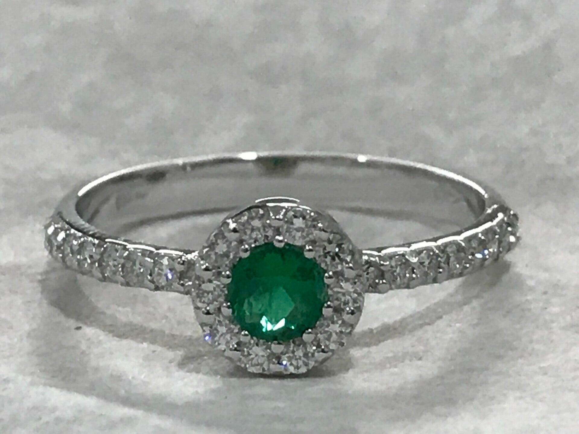 ANELLO SOLITARIO ORO BIANCO 18 KT CON DIAMANTI 0,30 CT E SMERALDO NATURALE 0,30 CT - REGALO SAN VALENTINO - FESTA DELLA MAMMA - FIDANZAMENTO - MATRIMONIO