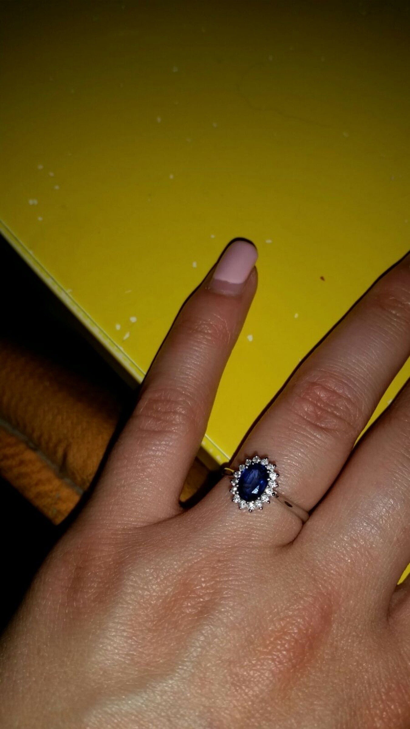ANELLO CENTRO E GIRO PRINCIPESSA IN ORO BIANCO 18 KT CON ZAFFIRO NATURALE CENTRALE 0,85 CT E DIAMANTI LATERALI 0,18 CT - REGALO NATALE , PROMESSA, LAUREA, SAN VALENTINO , FESTA DELLA MAMMA